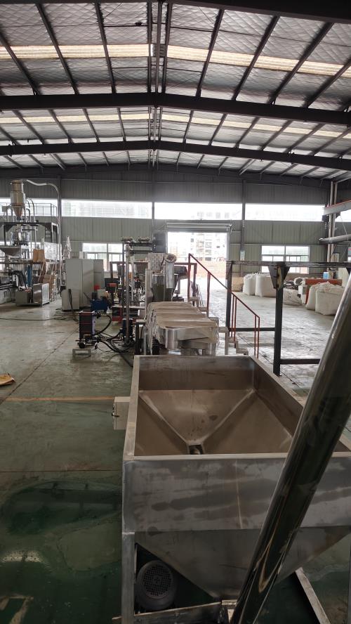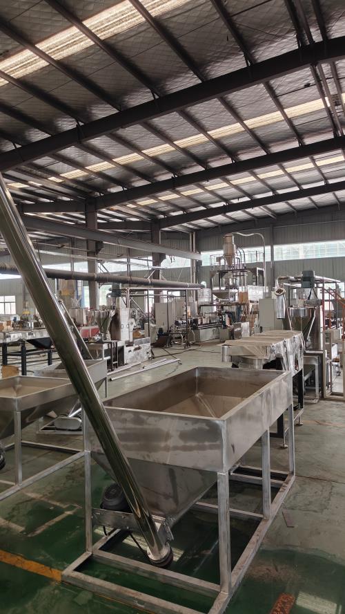- 用于容納螺桿和物料,通常會設置加熱裝置,如電加熱圈或導熱油加熱系統(tǒng),為物料的熔融提供抗車轍劑造粒設備_SBS瀝青改性劑母料設備熱量,使 TPR 物料能夠達到合適的熔融溫度。